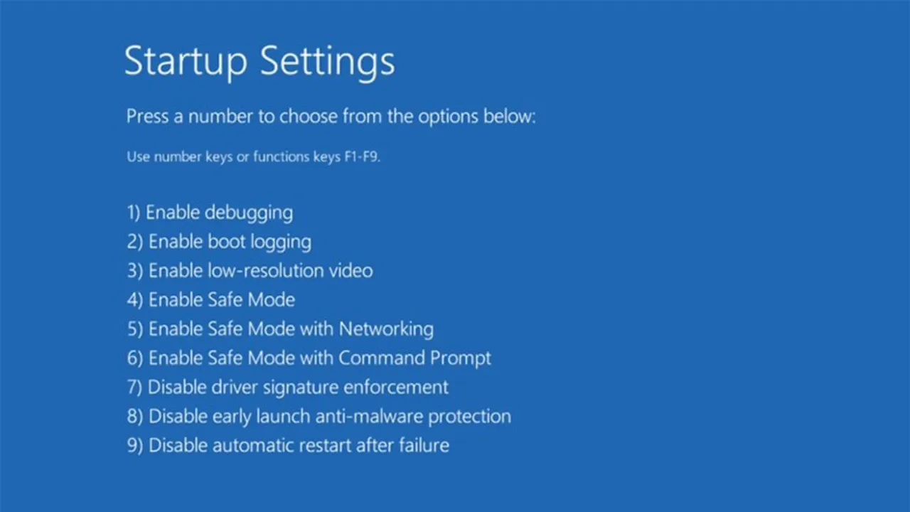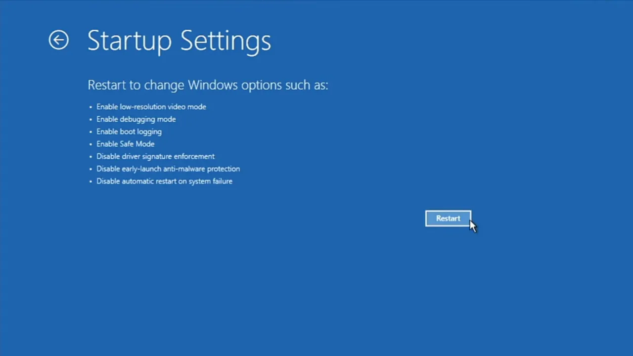 Boot into Safe Mode from WinRE: Go to Troubleshoot → Advanced options → Startup Settings → Restart. On the next screen, press 4 or F4 for Safe Mode, or 5 or F5 for Safe Mode with Networking (needed if you have to download drivers).